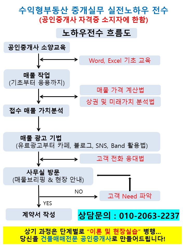 "수익형부동산 중개실무 노하우 전수" 주말반을 모집합니다.